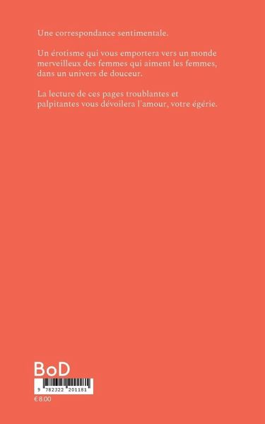 Une correspondance sentimentale.Un érotisme qui vous emportera dans le monde merveilleux des femmes qui aiment les femmes, dans un univers de douceur. La lecture de ces pages troublantes et palpitantes vous dévoilera l'amour, votre égérie.