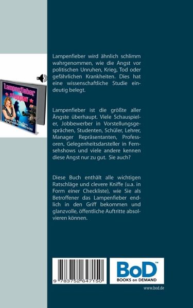 Lampenfieber wird ähnlich schlimm wahrgenommen, wie die Angst vor politischen Unruhen, Krieg, Tod oder gefährlichen Krankheiten. das hat eine wissenschaftliche Studie eindeutig belegt. Lampenfieber ist die größte aller Ängste überhaupt. Viele Schauspieler, Jobbewerber in Vorstellungsgesprächen, Studenten, Schüler, Lehrer, Manager Repräsentanten, Professoren, Gelegenheitsdarsteller in Shows und viele andere kennen diese Angst nur zu gut. Sie auch?Diese Buch enthält alle wichtigen Ratschläge und clevere Kniffe (u.a. in Form einer Checkliste), wie Sie als Betroffener das Lampenfieber endlich in den Griff bekommen und glanzvolle, öffentliche Auftritte absolvieren können. Vorhang auf