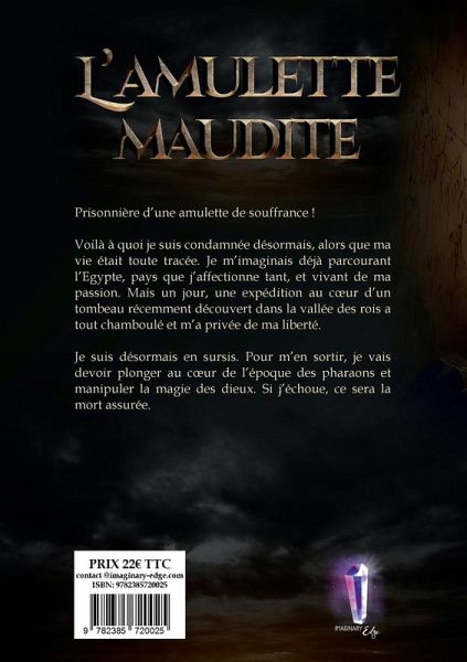 Prisonnière d'une amulette de souffrance! Voilà à quoi je suis condamnée désormais, alors que ma vie était toute tracée. Je m'imaginais déjà parcourant l'Egypte, pays que j'affectionne tant, et vivant de ma passion. Mais un jour, une expédition au coeur d'un tombeau récemment découvert dans la vallée des rois a tout chamboulé et m'a privée de ma liberté. Je suis désormais en sursis. Pour m'en sortir, je vais devoir plonger au coeur de l'époque des pharaons et manipuler la magie des dieux. Si j'échoue, ce sera la mort assurée.