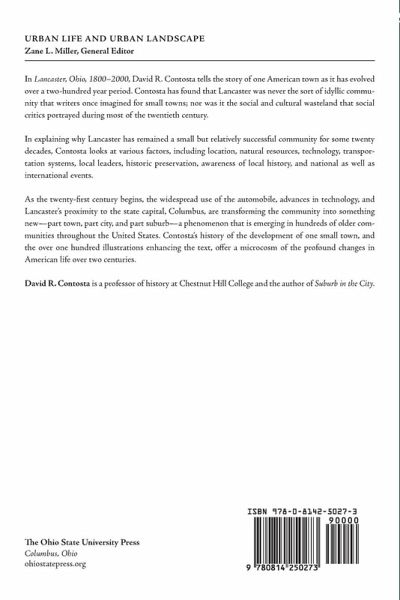 In Lancaster, Ohio, 1800-2000, David R. Contosta tells the story of one American town as it has evolved over a two-hundred year period. Contosta has found that Lancaster was never the sort of idyllic community that writers once imagined for small towns; nor was it the social and cultural wasteland that social critics portrayed during most of the twentieth century. In explaining why Lancaster has remained a small but relatively successful community for some twenty decades, Contosta looks at various factors, including location, natural resources, technology, transportation systems, local leaders, historic preservation, awareness of local history, and national as well as international events. As the twenty-first century begins, the widespread use of the automobile, advances in technology, and Lancaster's proximity to the state capital, Columbus, are transforming the community into something new-part town, part city, and part suburb-a phenomenon that is emerging in hundreds of older communities throughout the United States. Contosta's history of the development of one small town, and the over one hundred illustrations enhancing the text, offer a microcosm of the profound changes in American life over two centuries.