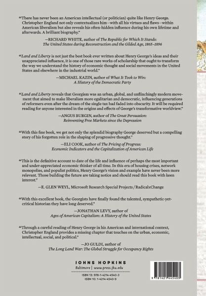 A comprehensive history of Henry George and the single tax movement. In 1912, Sun Yat-sen announced the birth of the Chinese Republic and promised that it would be devoted to the economic welfare of all its people. In shaping his plans for wealth redistribution, he looked to an American now largely forgotten in the United States: Henry George. In Land and Liberty, Christopher William England excavates the lost history of one of America's most influential radicals and explains why so many activists were once inspired by his proposal to tax landed wealth. Drawing on the private papers of a network of devoted believers, Land and Liberty represents the first comprehensive account of this important movement to nationalize land and expropriate rent. Beginning with concerns about rising rents in the 1870s and ending with the establishment of New Deal policies that extended public control over land, natural resources, and housing, "Georgism" served as a catalyst for reforms intended to make the nation more democratic. Many of these concerns remain relevant today, including the exploitation of natural resources, rising urban rent, and wealth inequality. At a time when class divisions sparked fears that capitalism and democracy were incompatible, hopes of building a social welfare state using the rents of idle landlords revitalized the middle class's conviction that democracy and liberty could be reconciled. Against steep odds, George made land nationalization vital to the politics of a nation dominated by small farmers and helped push liberalism leftward through his calls for collective rights to land and natural resources.