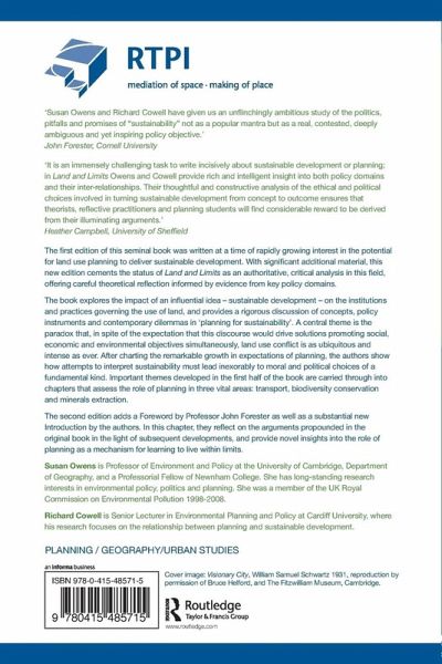The first edition of this seminal book was written at a time of rapidly growing interest in the potential for land use planning to deliver sustainable development, and explored the connections between the two and implications for public policy. In the decade since the book was first conceived, environmental imperatives have risen still further up the policial agenda and land use conflicts have intensified, lending even greater importance to the authors' research. In a rigorous discussion of concepts, policy instruments and contemporary planning dilemmas, the authors challenge prevailing assumptions about planning for sustainability. After charting the remarkable growth in expectations of planning, they show how attempts to interpret sustainability must lead to fundamental moral and political choices.