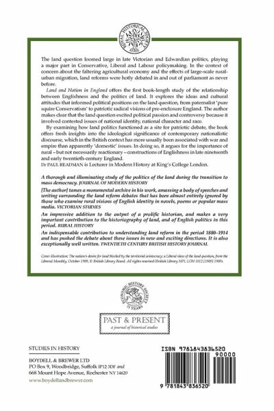The land question loomed large in late Victorian and Edwardian politics, playing a major part in Conservative, Liberal and Labour policymaking: in the context of concern about the faltering agricultural economy and the effects of large-scale rural-urban migration, land reforms were hotly debated in and out of parliament as never before. This book offers the first full-length study of the relationship between Englishness and the politics of land. It explores the ideas and cultural attitudes that informed political positions on the land question, from paternalist "pure squire Conservatism" to patriotic radical visions of pre-enclosure England: the author underlines how the land question excited political passion and controversy because it involved contested issues of national identity, national character and race. By examining how land politics functioned as a site for patriotic debate, the book offers fresh insights into the ideological significance of contemporary nationalistic discourse, which in the British context has more usually been associated with war and empire than apparently "domestic" issues. In doing so, it argues for the importance of rural - but not necessarily reactionary - constructions of Englishness in late nineteenth and early twentieth-century England. Dr PAUL READMAN is Lecturer in Modern History at King's College London.