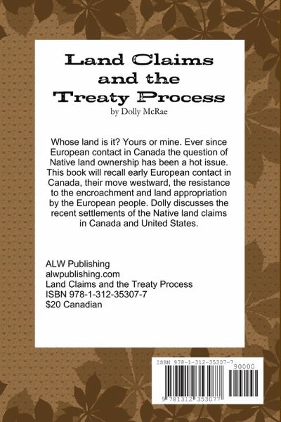 Whose land is it? Yours or mine. Ever since European contact in Canada the question of Native land ownership has been a hot issue. This paper will recall early European contact in Canada, their move westward, the resistance to the encroachment and land appropriation by the Europeans. Dolly discusses the recent settlements of the Native land claims in Canada and United States. She talks of how the government would like 95% of the territory that is rich in natural resources. Dolly tells other Natives not to sign treaties that will extinguish right to the land and that each band member should benefit from royalties from thje extraction of their natural resources.