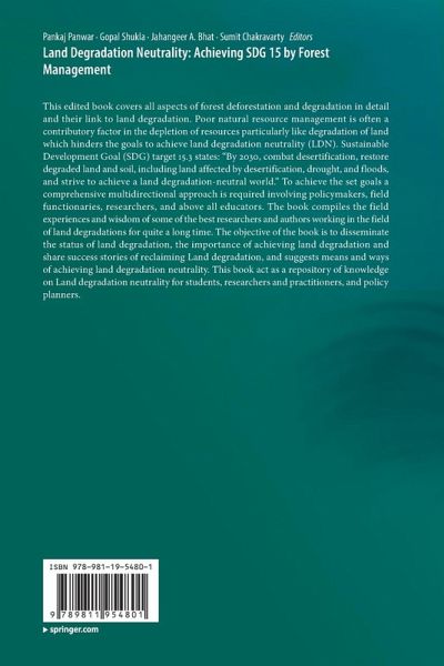 This edited book covers all aspects of forest deforestation and degradation in detail and their link to land degradation. Poor natural resource management is often a contributory factor in the depletion of resources particularly like degradation of land which hinders the goals to achieve land degradation neutrality (LDN). Sustainable Development Goal (SDG) target 15.3 states: "By 2030, combat desertification, restore degraded land and soil, including land affected by desertification, drought, and floods, and strive to achieve a land degradation-neutral world." To achieve the set goals a comprehensive multidirectional approach is required involving policymakers, field functionaries, researchers, and above all educators. The book compiles the field experiences and wisdom of some of the best researchers and authors working in the field of land degradations for quite a long time. The objective of the book is to disseminate the status of land degradation, the importance of achieving land degradation and share success stories of reclaiming Land degradation, and suggests means and ways of achieving land degradation neutrality. This book act as a repository of knowledge on Land degradation neutrality for students, researchers and practitioners, and policy planners.