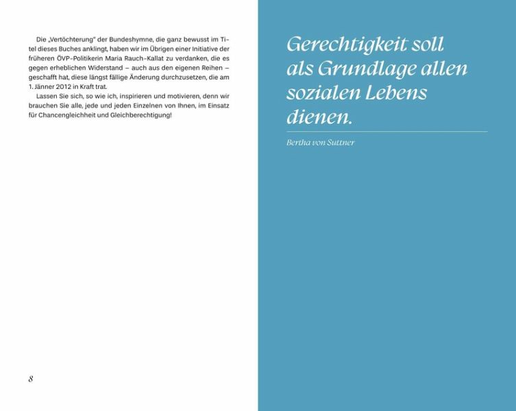 Doris Schmidauer beschreibt sich am liebsten als »First Volunteer« und als Teil einer großen Gruppe an engagierten Frauen. Es sind Frauen, die durch ihren Mut und ihren Gestaltungswillen unser »Land der Töchter« zu einem noch besseren Ort machen. Einige dieser Pionierinnen erzählen in diesem Buch auch ihre Geschichte.So entstand mehr als eine Autobiografie: Sie erzählt sehr persönlich von ihrer Vorstellung von Freundschaft und Familie, von ihrer Kindheit und Jugend auf dem Land, von dem, was sie im Leben geprägt hat. Wir erfahren, wie die überzeugte Feministin ihren Mann, Alexander Van der Bellen, kennenlernte und wie sie an seiner Seite für mehr Chancengleichheit und Gleichberechtigung kämpft.