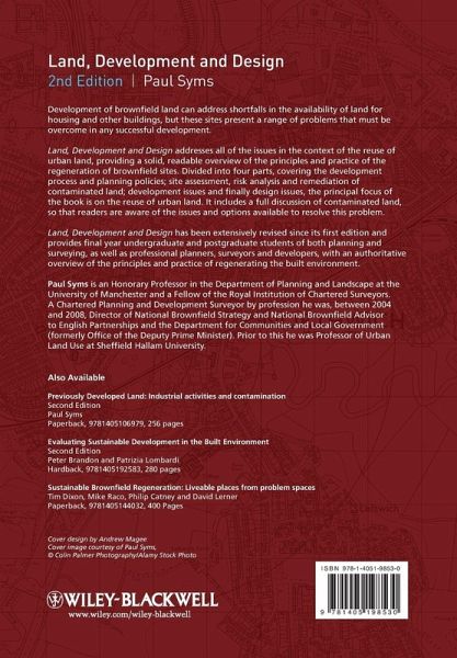 Land, Development and Design 2nd Edition Paul Syms Development of brownfield land can address shortfalls in the availability of land for housing and other buildings, but these sites present a range of problems that must be overcome in any successful development. Land, Development and Design addresses all of the issues in the context of the reuse of urban land, providing a solid, readable overview of the principles and practice of the regeneration of brownfield sites. Divided into four parts, covering the development process and planning policies; site assessment, risk analysis and remediation of contaminated land; development issues and finally design issues, the principal focus of the book is on the reuse of urban land. It includes a full discussion of contaminated land, so that readers are aware of the issues and options available to resolve this problem. Land, Development and Design has been extensively revised since its first edition and provides final year undergraduate and postgraduate students of both planning and surveying, as well as professional planners, surveyors and developers, with an authoritative overview of the principles and practice of regenerating the built environment.