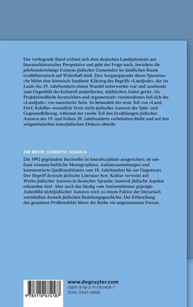 Der vorliegende Band widmet sich dem deutschen Landjudentum aus literaturhistorischer Perspektive und geht der Frage nach, inwiefern die jahrhundertelange Existenz jüdischer Gemeinden im ländlichen Raum erzählliterarisch auf Widerhall stieß. Den Ausgangspunkt dieser Spurensuche bildet eine historisch fundierte Klärung des Begriffs "Landjude", der im Laufe des 19. Jahrhunderts einem Wandel unterworfen war und zusehends zum Gegenbild des kulturell assimilierten, städtischen Juden geriet. Als Projektionsfläche heranziehen und argumentativ vereinnahmen ließ sich der "Landjude" von mancherlei Seite. So behandelt der erste Teil von "Land, Dorf, Kehilla" wesentlich Texte nicht-jüdischer Autoren der Spät- und Gegenaufklärung, während der zweite Teil den Erzählungen jüdischer Autoren des 19. und frühen 20. Jahrhunderts vorbehalten bleibt und auf den zeitgenössischen innerjüdischen Diskurs abstellt.