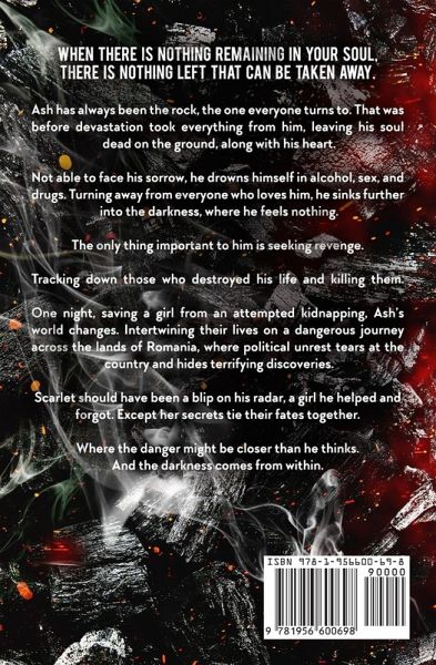 When there is nothing remaining in your soul, there is nothing left that can be taken away. Ash has always been the rock, the one everyone turns too. That was before devastation took everything from him, leaving his soul dead on the ground, along with his heart. Not able to face his sorrow, he drowns himself in alcohol, sex, and drugs. Turning away from everyone who loves him, he sinks further into the darkness, where he feels nothing. The only thing important to him is seeking revenge. Tracking down those who destroyed his life and killing them. One night, saving a girl from an attempted kidnapping, Ash's world changes. Intwining their lives on a dangerous journey across the lands of Romania, where political unrest tears at the country and hides terrifying discoveries. Scarlet should have been a blimp on his radar, a girl he helped and forgot. Except her secrets tie their fates together. Where the danger might be closer than he thinks. And the darkness comes from within.