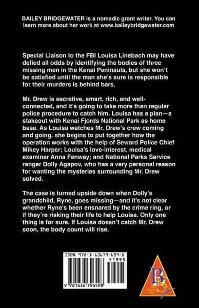 Special Liaison to the FBI Louisa Linebach may have defied all odds by identifying the bodies of three missing men in the Kenai Peninsula, but she won't be satisfied until the man she's sure is responsible for their murders is behind bars. Mr. Drew is secretive, smart, rich, and well-connected, and it's going to take more than regular police procedure to catch him. Louisa has a plan--a stakeout with Kenai Fjords National Park as home base. As Louisa watches Mr. Drew's crew coming and going, she begins to put together how the operation works with the help of Seward Police Chief Mikey Harper; Louisa's love-interest, medical examiner Anna Fenway; and National Parks Service ranger Dolly Agapov, who has a very personal reason for wanting the mysteries surrounding Mr. Drew solved. The case is turned upside down when Dolly's grandchild, Ryne, goes missing--and it's not clear whether Ryne's been ensnared by the crime ring, or if they're risking their life to help Louisa. Only one thing is for sure. If Louisa doesn't catch Mr. Drew soon, the body count will rise.