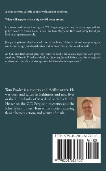 A dead veteran. A little county with a major problem. What will happen when a big-city PI noses around? Hacker-turned-private investigator C.T. Ferguson gets a client he never expected: his police detective cousin Rich. In rural western Maryland, Rich's old Army friend Jim died in an apparent suicide. Jim got help from a charity called Land of the Brave. He had a job and a purpose again, and he was happy. Jim's heartbroken widow doesn't believe he killed himself. As C.T. and Rich investigate, they come to doubt the suicide angle but can't prove anything. When C.T. makes a shocking discovery, he and Rich attract the wrong kind of attention. Can they survive against a backwoods crime syndicate?