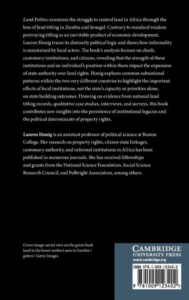 Lauren Honig is an assistant professor of political science at Boston College. Her research on property rights, citizen-state linkages, customary authority, and informal institutions in Africa has been published in numerous journals. She has received fellowships and grants from the National Science Foundation, Social Science Research Council, and Fulbright Association, among others.