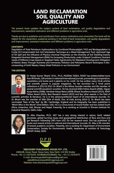 The present book updates the subject content of land reclamation, soil quality degradation and improvement, wasteland restoration and different problems in agriculture soils