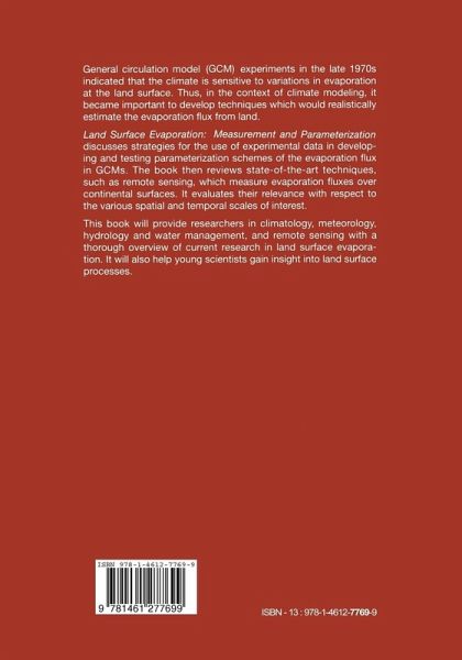 General circulation model (GCM) experiments in the late 1970's indicated that the climate is sensitive to variations in evaporation at the land surface. Thus, in the context of climate modeling, it became important to develop techniques which would realistically estimate the evaporation flux on land. Land Surface Evaporation: Measurement and Parameterization discusses strategies for the use of experimental data in developing and testing parameterization schemes of the evaporation flux in GCM's. The book reviews state-of-the-art techniques, such as remote sensing, which measure evaporation fluxes over continental surfaces. It evaluates their relevance with respect to the various spatial and temporal scales of interest. This book will provide researchers in climatology, meteorology, hydrology and water management, and remote sensing with a thorough overview of current research in land surface evaporation. It will also give young scientists insight into surface processes.