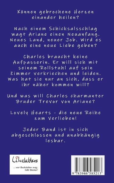 Können gebrochene Herzen einander heilen?Nach einem Schicksalsschlag wagt Ariane einen Neuanfang. Neues Land, neuer Job. Wird es auch eine neue Liebe geben?Charles braucht keine Aufpasserin. Er will sich mit seinem Rollstuhl auf sein Zimmer verkriechen und leiden. Was hat sie nur an sich, dass er ihr näher kommen will?Und was will Charles charmanter Bruder Trevor von Ariane?Lovely Hearts - die neue Reihe zum Verlieben!Jeder Band ist in sich abgeschlossen und unabhängig lesbar.