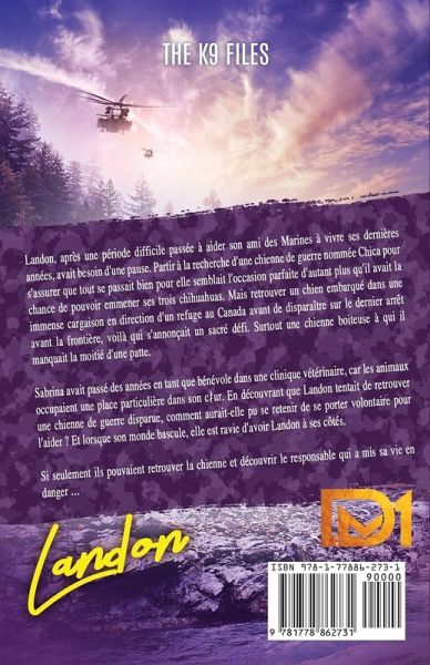 Landon, après une période difficile passée à aider son ami des Marines à vivre ses dernières années, avait besoin d'une pause. Partir à la recherche d'une chienne de guerre nommée Chica pour s'assurer que tout se passait bien pour elle semblait l'occasion parfaite d'autant plus qu'il avait la chance de pouvoir emmener ses trois chihuahuas. Mais retrouver un chien embarqué dans une immense cargaison en direction d'un refuge au Canada avant de disparaître sur le dernier arrêt avant la frontière, voilà qui s'annonçait un sacré défi. Surtout une chienne boiteuse à qui il manquait la moitié d'une patte. Sabrina avait passé des années en tant que bénévole dans une clinique vétérinaire, car les animaux occupaient une place particulière dans son c¿ur. En découvrant que Landon tentait de retrouver une chienne de guerre disparue, comment aurait-elle pu se retenir de se porter volontaire pour l'aider ? Et lorsque son monde bascule, elle est ravie d'avoir Landon à ses côtés. Si seulement ils pouvaient retrouver la chienne et découvrir le responsable qui a mis sa vie en danger ...