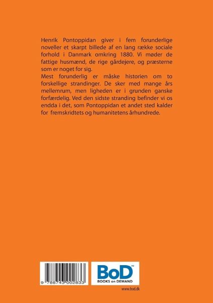 Henrik Pontoppidan giver i fem forunderlige noveller et skarpt billede af en lang række sociale forhold i Danmark omkring 1880. Vi møder de fattige husmænd, de rige gårdejere, og præsterne som er noget for sig.