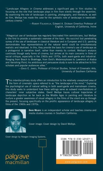 "Melbye's Landscape Allegory in Cinema addresses a significant gap in film studies by focusing on the role that landscape plays in film from silents through the '70's. By examining the role of landscape in painting, photography and literature, as well as film, Melbye has made the case for the symbolic role of landscape in twentieth-century cinema." - Robert Folkenflik, Edward A. Dickson Emeritus Professor of English, University of California, Irvine