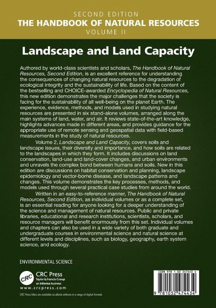 Written in an easy-to-reference manner, The Handbook of Natural Resources, Second Edition, as individual volumes or as a complete set, is an essential reading for anyone looking for a deeper understanding of the science and management of natural resources. Public and private libraries, educational and research institutions, scientists, scholars, and resource managers will benefit enormously from this set. Individual volumes and chapters can also be used in a wide variety of both graduate and undergraduate courses in environmental science and natural science at different levels and disciplines, such as biology, geography, earth system science, and ecology.