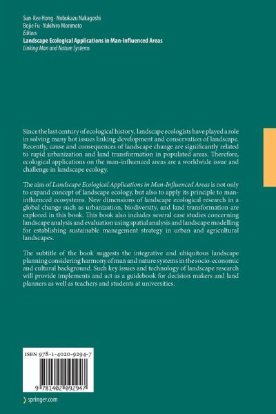 The subtitle of the book suggests the integrative and ubiquitous landscape planning considering harmony of man and nature systems in the socio-economic and cultural background. Such key issues and technology of landscape research will provide implements and guidebook for decision makers and land planners as well as teachers and students at universities.