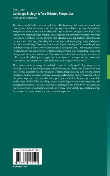 This is methods/tools textbook that covers the fundamental tasks in research and management at the landscape scale. It brings together tools from a range of disciplines and presents them in a natural workflow that a practitioner can appreciate. Alternative texts cover a narrower range of topics and/or present the information without reference to a natural workflow. The book begins with 2 fundamental applications that introduce the scope and challenges of working at the landscape scales (sampling design and species distribution modeling). These motivate several chapters that 'digress' to cover the primary tools that ecologists use to work with multivariate and spatial data. The book then returns to applications including site prioritization, interpreting (and forecasting) landscape change, and integrated assessment. The tasks themselves follow a logical workflow of collecting and analyzing data, applying the analyses to management decisions, and interpreting the outcomes of these decisions in an integrated framework.