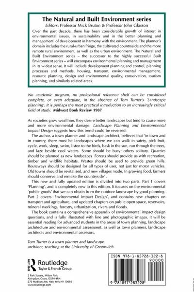 Written for use in undergraduate and postgraduate planning courses and for those involved in all aspects of the planning process, this comprehensive textbook focuses on environmental impact assessment and design and in particular their impact on planning for the landscape.