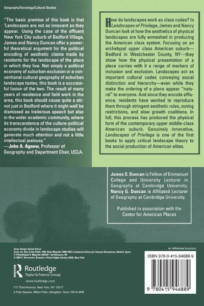 James Duncan is a University Lecturer in Geography at Cambridge University, and Nancy Duncan is Affiliated Lecturer of Geography at Cambridge University.