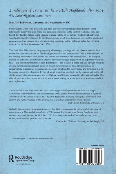 In November 1918, the implementation of agrarian change in the Scottish Highlands threatened another wave of unemployment and eviction for the land-working population, which led to widespread and varied social protest. Those who had been away on war service (and their families) faced returning to exactly the same social and economic conditions in the Scottish Highlands they had hoped they had left behind in the struggle to make 'a land fit for heroes'. Widespread and varied social protest rapidly followed. It argues that, previously, there has been a failure to capture fully the geography, chronology typology and rate of occurrence of these events. The book not only offers new insights and a greater understanding of what was happening in the Highlands in this period, but illustrates how a range of forms of protest were used which demand attention, not least for the fact that these events, unlike most of the earlier Land Wars period, were successful. There are functioning townships in the Highlands today that owe their existence to the land invasions of the 1920s. The book innovatively concentrates on formulating explanation and interpretation from within and looks to the crofting landscape as base, means and motive to disturbance and interpretation. It proposes that protest is much more convincingly understood as an expression of environmental ethics from 'the bottom up' coming increasingly into conflict with conservationist views expressed from 'the top down' It focuses on individual case studies in order to engage more convincingly with an important evidential base - that of popular memory of land disturbances - and to adopt a frame and lens through which to explore the fluid and contingent nature of protest performances. Based upon the belief that in the study of landscapes of social protest the old shibboleth of space as solely passive setting and symbolic register is no longer tenable is paid here to nature/culture interactions, to vernacular ecological b