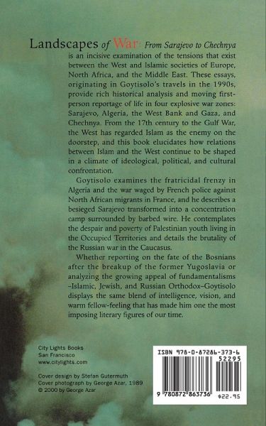 Landscapes of War: From Sarajevo to Chechnya is an incisive examination of the tensions that exist between the West and Islamic societies of Europe, North Africa and the Middle East. These essays, originating in Goytisolo's travels in the late 1990s, provide rich historical analysis and moving first-person reportage of life in four explosive war-zones: Sarajevo, Algeria, the West Bank and Gaza, and Chechnya. From the 17th century to the Gulf War, the West has regarded Islam as the enemy on the doorstep, and this book elucidates how relations between Islam and the West continue to be shaped in a climate of ideological, political and cultural confrontation. Goytisolo examines the fratricidal frenzy in Algeria and the war waged by French police against North African migrants in France, and he describes a besieged Sarajevo transformed into a concentration camp surrounded by barbed wire. He contemplates the despair and poverty of Palestinian youth living in the Occupied Territories and details the brutality of the Russian war in the Caucasus. Whether reporting on the fate of the Bosnians after the break up of the former Yugoslavia or analyzing the growing appeal of fundamentalisms—Islamic, Jewish and Russian Orthodox—Goytisolo displays the same blend of intelligence, vision, and warm fellow-feeling that has made him one the most imposing literary figures of our time. Many of these succinct and eloquent essays first appeared in Spain's leading newspaper El Pais, and English translations were published in the Times Literary Supplement (London). Juan Goytisolo was born in Barcelona in 1931. In 1993 he was awarded the Nelly Sachs Prize for his literary achievement and contribution to world culture. His translated works include a two volume autobiography, Forbidden Territory and Realms of Strife; the trilogy Marks of Identity, Count Julian and Juan the Landless; and the essays, Saracen Chronicles. Other works by him and published by City Lights Publishers include The Marx Family Saga, published in 1999, and A Cock-Eyed Comedy, published in 2005. Peter Bush is Director of the British Center for Literary Translation and translated Juan Goytisolo's The Marx Family Saga, which was awarded the Premio Valle-Inclan.