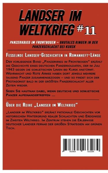 Der vorliegende Band "Panzerkrieg im Frontbogen" erzählt die Geschichte eines deutschen Panzersoldaten, der im Juli 1943 gegen die sowjetischen Linien bei Kursk anstürmt. Wehrmacht und Rote Armee haben dort jeweils mehrere tausend Panzer zusammengezogen - und so findet sich der Protagonist bald in der größten Panzerschlacht aller Zeiten wieder.Seien Sie hautnah dabei, wenn deutsche und sowjetische Panzer aufeinandertreffen ...Über die Reihe "Landser im Weltkrieg""Landser im Weltkrieg" erzählt fiktionale Geschichten vor historischem Hintergrund realer Schlachten und Ereignisse im Zweiten Weltkrieg. Im Zentrum stehen die Erlebnisse deutscher Landser fernab der großen Strategien am grünen Tisch.