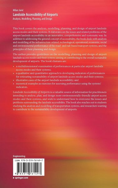 As such, the book offers a valuable source of information for all practitioners involved in analysing, planning and designing more environmentally friendly airport access modes and systems, and who want to learn how to overcome the issues and problems surrounding landside accessibility. It will also benefit students studying the analysis and modelling of transportation systems, and researchers seeking to promote improved sustainability at airports.