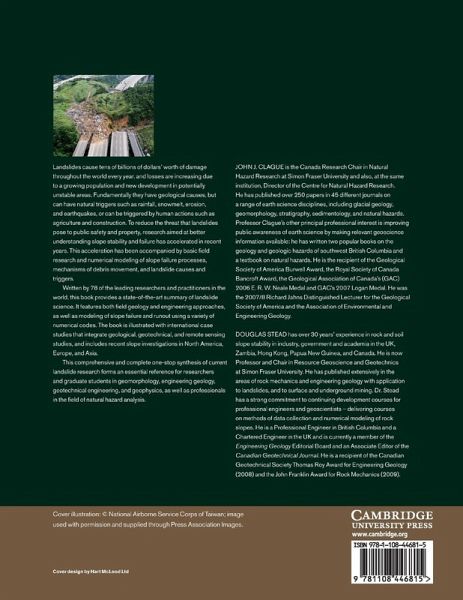 Landslides have geological causes but can be triggered by natural processes (rainfall, snowmelt, erosion and earthquakes) or by human actions such as agriculture and construction. Research aimed at better understanding slope stability and failure has accelerated in recent years, accompanied by basic field research and numerical modeling of slope failure processes, mechanisms of debris movement, and landslide causes and triggers. Written by seventy-five world-leading researchers and practitioners, this book provides a state-of-the-art summary of landslide science. It features both field geology and engineering approaches, as well as modeling of slope failure and run-out using a variety of numerical codes. It is illustrated with international case studies integrating geological, geotechnical and remote sensing studies, and includes recent slope investigations in North America, Europe and Asia. This is an essential reference for researchers and graduate students in geomorphology, engineering geology, geotechnical engineering and geophysics, as well as professionals in natural hazard analysis.
