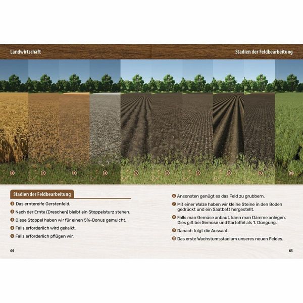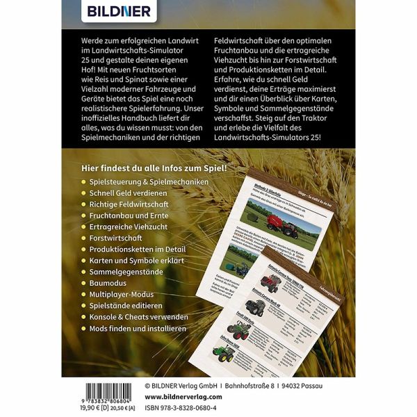 Spielsteuerung & SpielmechanikenSchnell Geld verdienenRichtige FeldwirtschaftFruchtanbau und ErnteErtragreiche ViehzuchtForstwirtschaftProduktionsketten im DetailKarten und Symbole erklärtSammelgegenständeBaumodusMultiplayer-ModusSpielstände editieren Konsole & Cheats verwendenMods finden und installieren