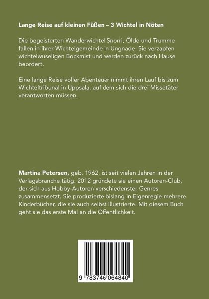 Lange Reise auf kleinen Füßen - 3 Wichtel in NötenDie begeisterten Wanderwichtel Snorri, Ölde und Trumme fallen in ihrer Wichtelgemeinde in Ungnade. Sie verzapfen wichtelwuseligen Bockmist und werden zurück nach Hause beordert. Eine lange Reise voller Abenteuer nimmt ihren Lauf bis zum Wichteltribunal in Uppsala, auf dem sich die drei Missetäter verantworten müssen.