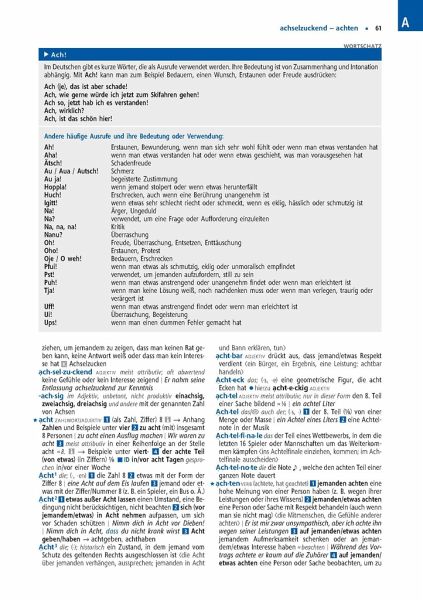 Rund 120.000 Stichwörter, Zusammensetzungen, Ableitungen und WendungenKennzeichnung der ca. 5.000 häufigsten und wichtigsten Wörter mit SternchenBesonders leicht verständliche Worterklärungen mit vielen typischen Kontexten und BeispielsätzenZahlreiche Infotexte zu Sprache und Landeskunde und mehr als 250 Abbildungen