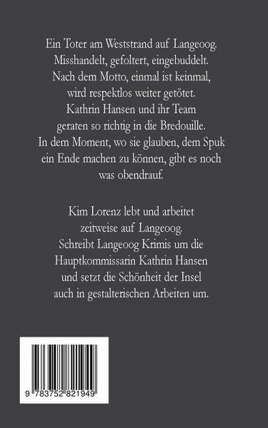 Auf Langeoog wird am Weststrand ein Toter gefunden. Misshandelt, gefoltert, eingebuddelt. Für eine schicke Dekoration wurde auch gesorgt. Wenn Kathrin Hansen glaubte, Schlimmeres könnte der Insel nicht passieren, hatte sie sich geschnitten. Im Laufe der Ermittlungen kramt sie richtig Fieses ans Licht und als ein weiterer Mord geschieht wird klar, dass es mit dem Frieden vorbei ist. Ihre ganze Sorge gilt den Feriengästen, den Familien mit Kindern, die einmal weg von dem Elend dieser Welt, auf der Insel abschalten wollen. Sie heißt es zu schützen. Als dann der Verdacht aufkommt, dass sich das…mehr
