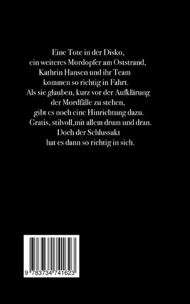 Eine Tote in der Disko, ein weiteres Mordopfer am Oststrand. Kathrin Hansen und ihr Team kommen so richtig in Fahrt. Als sie glauben, kurz vor der Aufklärung der Mordfälle zu stehen, gibt es noch eine Hinrichtung dazu. Gratis, stilvoll, mit allem drum und dran. Doch der Schlussakt hat es dann so richtig in sich.