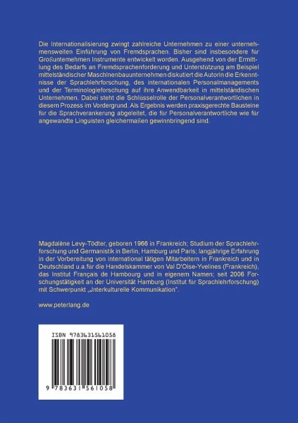 Die Internationalisierung zwingt zahlreiche Unternehmen zu einer unternehmensweiten Einführung von Fremdsprachen. Bisher sind insbesondere für Großunternehmen Instrumente entwickelt worden. Ausgehend von der Ermittlung des Bedarfs an Fremdsprachenförderung und Unterstützung am Beispiel mittelständischer Maschinenbauunternehmen diskutiert die Autorin die Erkenntnisse der Sprachlehrforschung, des internationalen Personalmanagements und der Terminologieforschung auf ihre Anwendbarkeit in mittelständischen Unternehmen. Dabei steht die Schlüsselrolle der Personalverantwortlichen in diesem Prozess im Vordergrund. Als Ergebnis werden praxisgerechte Bausteine für die Sprachverankerung abgeleitet, die für Personalverantwortliche wie für angewandte Linguisten gleichermaßen gewinnbringend sind.