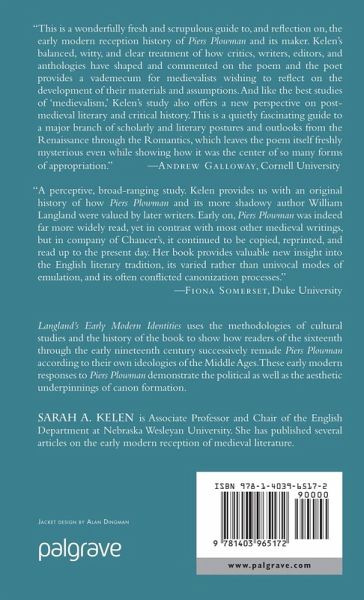 "Who was William Langland? Sarah A. Kelen s history of Langland s reception from the Renaissance to the early nineteenth-century carefully delineates the ideological pressures shaping the surprising variety of possible answers to this question in early modern England. More than a guide to the afterlife of Piers Plowman, Langland s Early Modern Identities offers an important vantage point from which to view early modern medievalism. One need not be a Langland specialist nor an early modernist to appreciate the view. Indeed, Langland s relative obscurity, both to early moderns and to us, is what makes Kelen s account so compelling. For Kelen, Langland is less a subject in his own right than a vehicle for exploring just how it is we come to know what we think we knowabout authors and texts alike." - Renaissance Quarterly