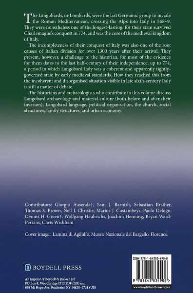 Essays examining the Langobards, with important conclusions for early medieval Italy. The Langobards or Lombards were the last Germanic group to invade the Roman Mediterranean, crossing the Alps into Italy in 568-9. They were nonetheless one of the longest-lasting, for their state survived Charlemagne's conquest in774, and was the core of the medieval kingdom of Italy. The incompleteness of their conquest of Italy was also one of the root causes of Italian division for over 1300 years after their arrival. But they present a challenge to the historian, for most of the evidence for them dates to the last half-century of their independence, up to 774, a period in which Langobard Italy was a coherent and apparently tightly-governed state by early medieval standards. How they reached this from the incoherent and disorganised situation visible in late sixth-century Italy is still a matter of debate. The historians and archaeologists who contribute to this volume discuss Langobard archaeologyand material culture both before and after their invasion, Langobard language, political organisation, the church, social structures, family structures, and urban economy. It is thus an important and up to date starting point forfuture research on early medieval Italy. Contributors: G. AUSENDA, S. BARNISH, S. BRATHER, T.S. BROWN, N. CHRISTIE, M. COSTAMBEYS, P. DELOGU, D. GREEN, W. HAUBRICHS, J. HENNING, B. WARD-PERKINS, C. WICKHAM.