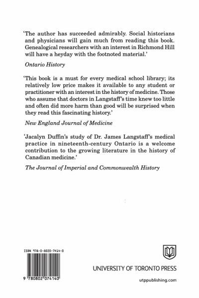 A unique and readable microhistory of an ordinary physician and his community during a period of revolutionary medical change. Duffin bases her insights on a detailed computer-assisted analysis of 40 years of extant daybooks of James Langstaff (1825-1889).