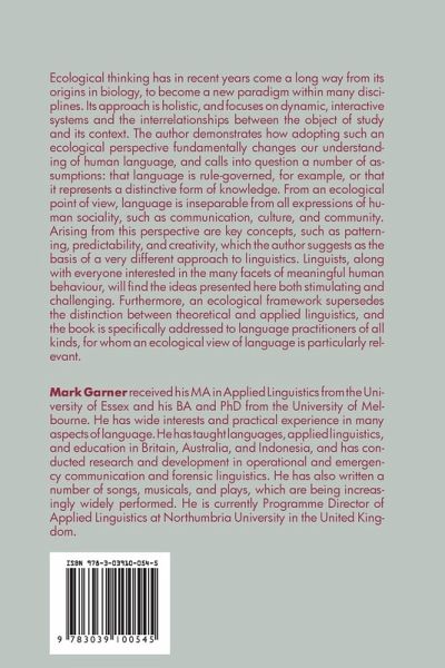 Ecological thinking has in recent years come a long way from its origins in biology, to become a new paradigm within many disciplines. Its approach is holistic, and focuses on dynamic, interactive systems and the interrelationships between the object of study and its context. The author demonstrates how adopting such an ecological perspective fundamentally changes our understanding of human language, and calls into question a number of assumptions: that language is rule-governed, for example, or that it represents a distinctive form of knowledge. From an ecological point of view, language is inseparable from all expressions of human sociality, such as communication, culture, and community. Arising from this perspective are key concepts, such as patterning, predictability, and creativity, which the author suggests as the basis of a very different approach to linguistics. Linguists, along with everyone interested in the many facets of meaningful human behaviour, will find the ideaspresented here both stimulating and challenging. Furthermore, an ecological framework supersedes the distinction between theoretical and applied linguistics, and the book is specifically addressed to language practitioners of all kinds, for whom an ecological view of language is particularly relevant.