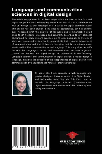 The web is very present in our lives, especially in the form of interface and digital design. But what relationship do we have with it? Can it communicate with us through its own language or is it based on digital communication? Web design has been studied a lot since its appearance, but has anyone ever wondered what the analysis of language and communication could bring to it? It seems interesting and coherent, according to my personal background, to study it more precisely as its own language, or system of signs carrying meaning, in order to demonstrate that it can be independent of communication and that it holds a meaning that is sometimes more innate and intuitive than a written or oral language. This study aims to clarify the role that language sciences and communication can have in graphic creation for the web and digital design. Its problematic is the following: Language sciences and communication in digital design: is digital design a language? It raises the question of the independence of digital design from communication by deciphering the nature of their relationship.