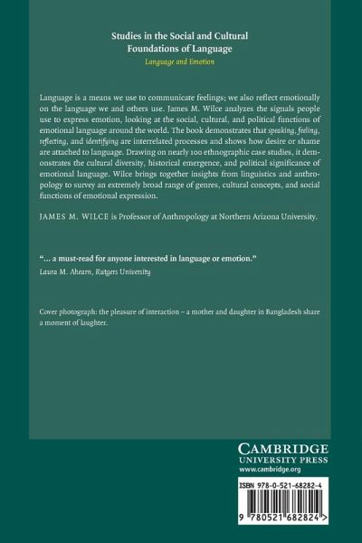 Language is a means we use to communicate feelings; we also reflect emotionally on the language we and others use. James Wilce analyses the signals people use to express emotion, looking at the social, cultural and political functions of emotional language around the world. The book demonstrates that speaking, feeling, reflecting, and identifying are interrelated processes and shows how desire or shame are attached to language. Drawing on nearly one hundred ethnographic case studies, it demonstrates the cultural diversity, historical emergence, and political significance of emotional language. Wilce brings together insights from linguistics and anthropology to survey an extremely broad range of genres, cultural concepts, and social functions of emotional expression.