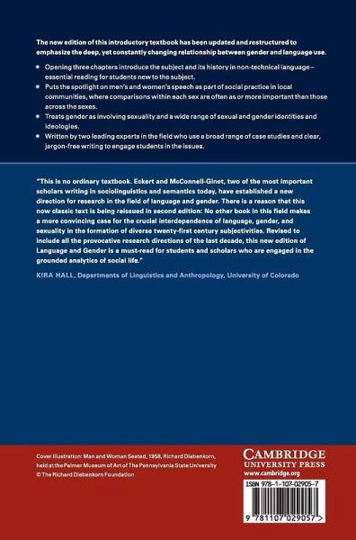 'This is no ordinary textbook. Eckert and McConnell-Ginet, two of the most important scholars writing in sociolinguistics and semantics today, have established a new direction for research in the field of language and gender. There is a reason that this now classic text is being reissued in second edition: no other book in this field makes a more convincing case for the crucial interdependence of language, gender, and sexuality in the formation of diverse twenty-first-century subjectivities. Revised to include all the provocative research directions of the last decade, this new edition of Language and Gender is a must-read for students and scholars who are engaged in the grounded analytics of social life.' Kira Hall, University of Colorado