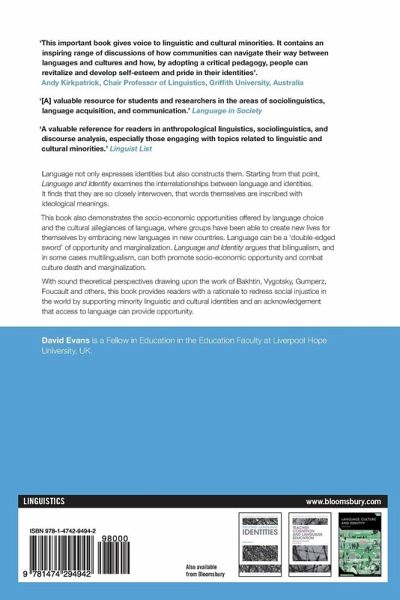Language not only expresses identities but also constructs them. Starting from that point, Language and Identity examines the interrelationships between language and identities. It finds that they are so closely interwoven, that words themselves are inscribed with ideological meanings. Words and language constitute meanings within discourses and discourses vary in power. The powerful ones reproduce more powerful meanings, colonize other discourses and marginalize or silence the least powerful languages and cultures. Language and culture death occur in extreme cases of marginalization. This book also demonstrates the socio-economic opportunities offered by language choice and the cultural allegiances of language, where groups have been able to create new lives for themselves by embracing new languages in new countries. Language can be a 'double-edged sword' of opportunity and marginalization. Language and Identity argues that bilingualism and in some cases multilingualism can both promote socio-economic opportunity and combat culture death and marginalization. With sound theoretical perspectives drawing upon the work of Bakhtin, Vygotsky, Gumperz, Foucault and others, this book provides readers with a rationale to redress social injustice in the world by supporting minority linguistic and cultural identities and an acknowledgement that access to language can provide opportunity.