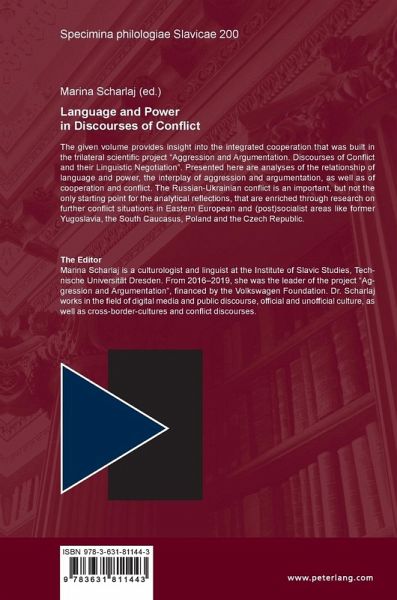 The given volume provides insight into the integrated cooperation that was built in the trilateral scientific project "Aggression and Argumentation. Discourses of Conflict and their Linguistic Negotiation". Presented here are analyses of the relationship of language and power, the interplay of aggression and argumentation, as well as of cooperation and conflict. The Russian-Ukrainian conflict is an important, but not the only starting point for the analytical reflections, that are enriched through research on further conflict situations in Eastern European and (post)socialist areas like former Yugoslavia, the South Caucasus, Poland and the Czech Republic.