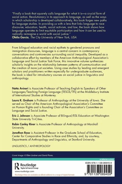 From bilingual education and racial epithets to gendered pronouns and immigration discourses, language is a central concern in contemporary conversations and controversies surrounding social inequality. Developed as a collaborative effort by members of the American Anthropological Association's Language and Social Justice Task Force, this innovative volume synthesizes scholarly insights on the relationship between patterns of communication and the creation of more just societies. Using case studies by leading and emergent scholars and practitioners written especially for undergraduate audiences, the book is ideal for introductory courses on social justice in linguistics and anthropology.