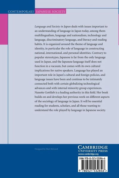 Language and Society in Japan deals with issues important to an understanding of language in Japan today, among them multilingualism, language and nationalism, and literacy and reading habits. It is organised around the theme of language and identity, in particular how language is used to construct national, international and personal identities. Contrary to popular stereotypes, Japanese is far from the only language used in Japan, and does not function in a vacuum, but comes with its own particular cultural implications. Language has played an important role in Japan's cultural and foreign policies, and language issues are intimately connected both with technological advance and with minority group experiences. Nanette Gottlieb is a leading authority in this field. This book builds on and develops her previous work, and promises to be essential reading for students, scholars, and all those wishing to understand the role played by language in Japanese society.
