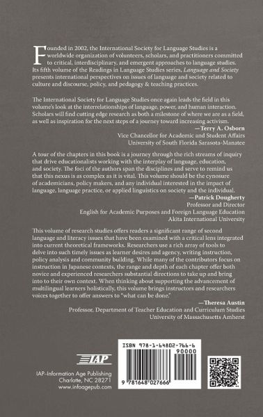 Language and Society is the fifth volume of the Readings in Language Studies series published by the International Society for Language Studies, Inc. Edited by Paul Chamness Miller, Hidehiro Endo, John L. Watzke, and Miguel Mantero, volume five sustains the society's mission to organize and disseminate the work of its contributing members through peer-reviewed publications. The book presents international perspectives on language and society in three thematic sections: teaching practices & pedagogy, policy, and culture. A resource for scholars and students, Language and Society represents the latest scholarship in new and emergent areas of inquiry.